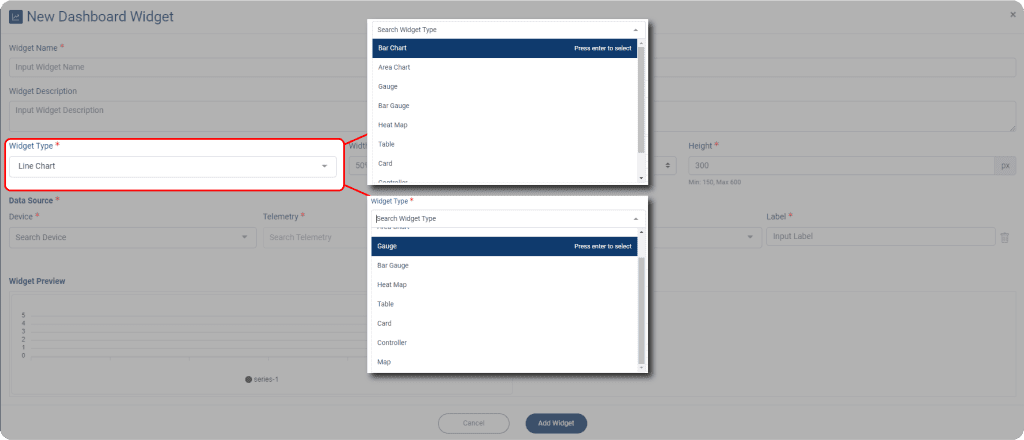 Each widget offers distinct advantages that depend on the number of telemetries selected and the data measured.