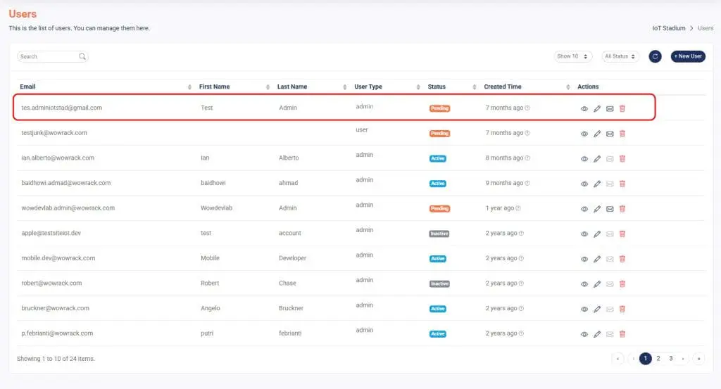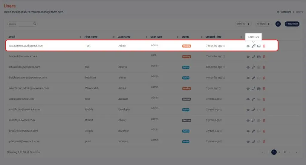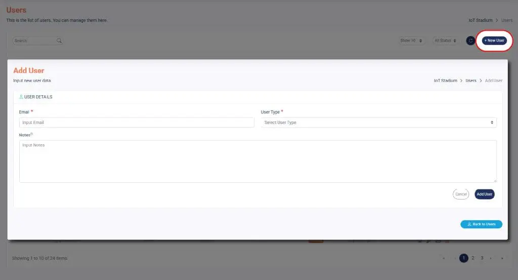 You can create and manage various user roles with distinct access levels and responsibilities in IoT Stadium thanks to its multi-tenancy architecture. Tenants, Admins, and Users are the three primary categories of users. Each type has different levels of access within the platform and distinct authorities.