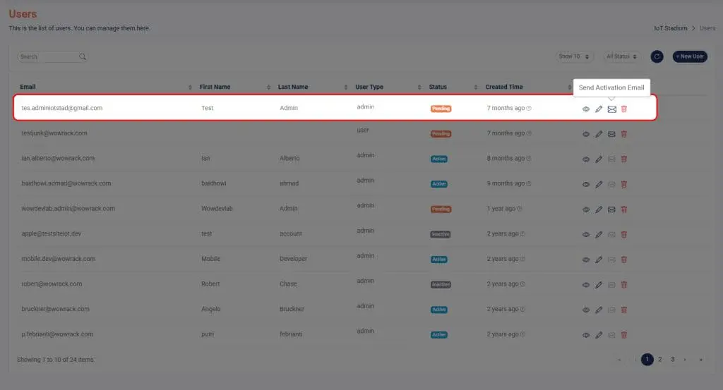 6. Click on Send Activation Email icon on the new user.