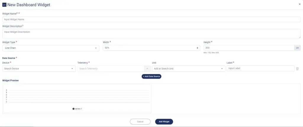 5. Set your Data Source: your device, telemetry, and unit, and label it. Most of the widget had pretty straight way to set it.