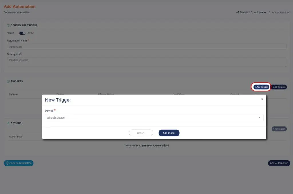 4. Select the Device you want to use, then click Add Trigger when finished.