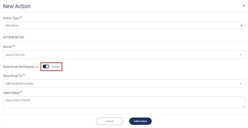2. If you want the alarm send as email notification, slide the Inactive button to activate the function.