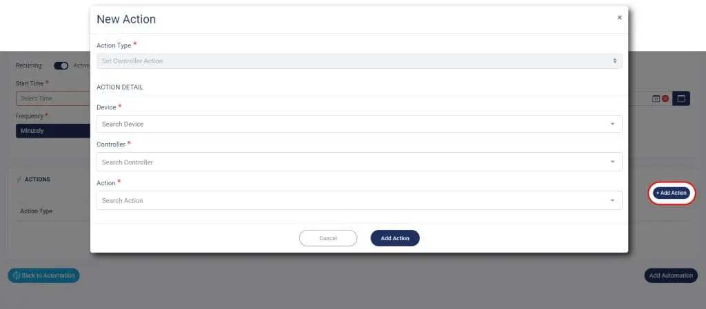 Once you've done set the schedule, you can set the action for your automation. But you are only able to set it for controller action