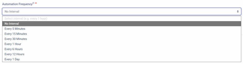 - Set the Automation Frequency, which the system checks every [X] time. If the threshold conditions are met the automation rules, the automation actions will be executed.
