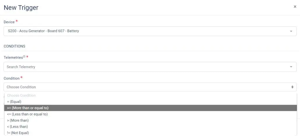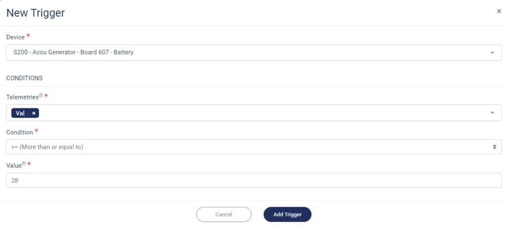A Telemetry Trigger lets you set thresholds for one or multiple telemetry values, whether they share the same limit or have different ones.