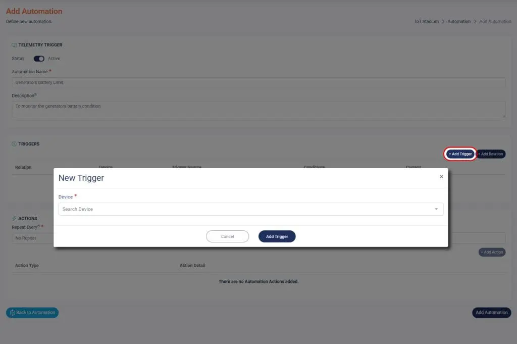 4. Select the Device you want to use, then click Add Trigger when finished.