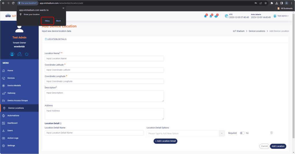 7. You can also set more detailed location by click on Location Detail.
