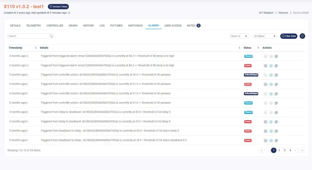 The Alarms tab will be filled with the list of alarms you’ve already set on the Automation menu. This page will be filled with the action and the time the alarm occurred.