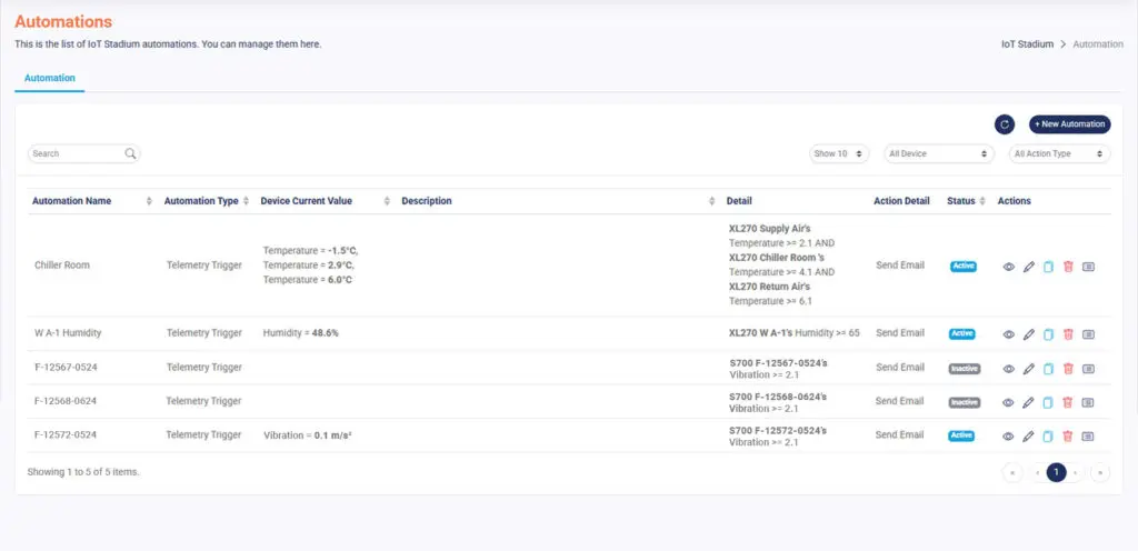 Set the preferred display set of automation list. You can show the list until 100 automations in one page. Filter the automation based on its related device. And lastly, set the list based on its action, ranged from set alarm, set controller action, send email and call REST API. - Refresh