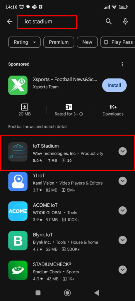 1. Download the Mobile App from the Google Play Store with the name IoT Stadium.