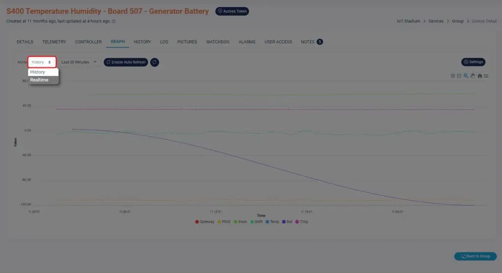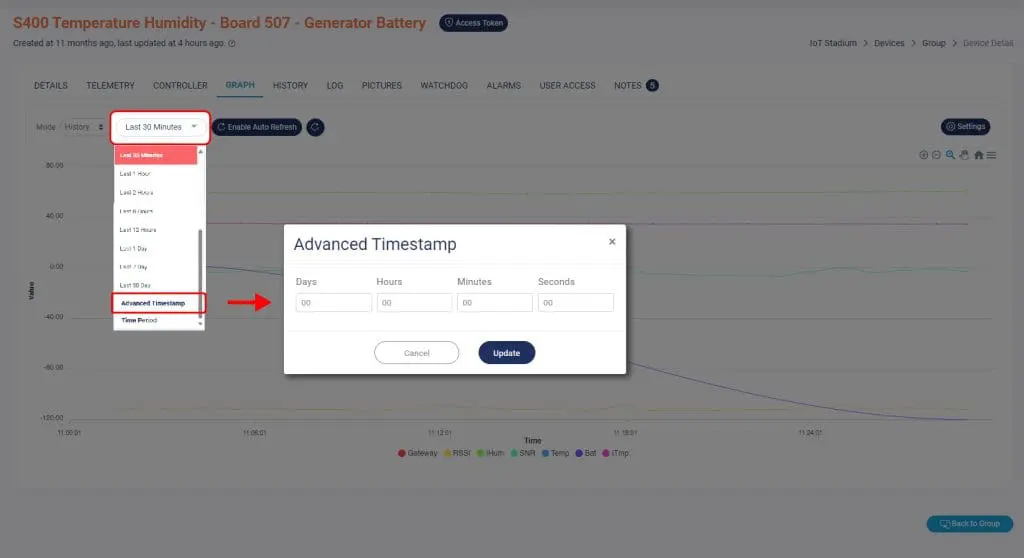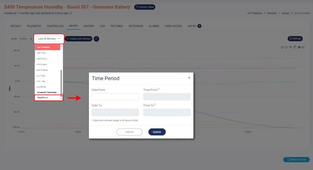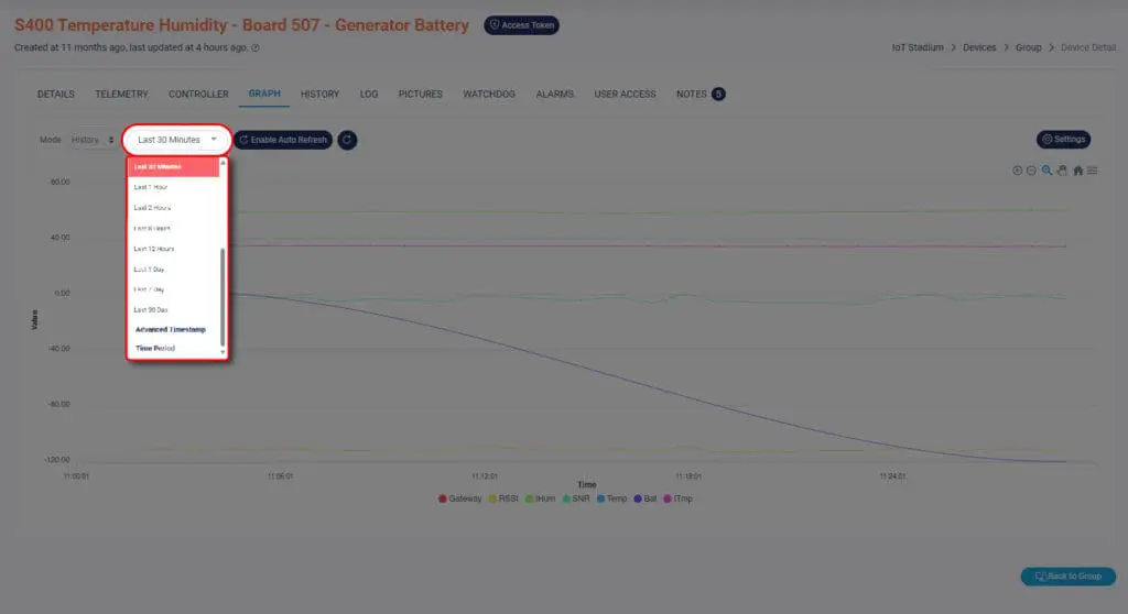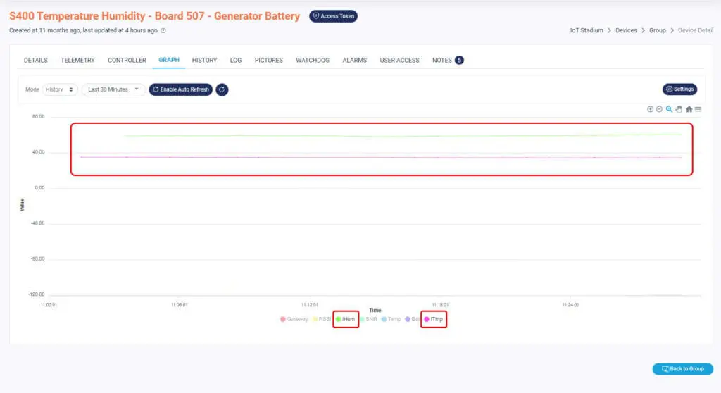 The displayed data based on the sensor reading history–depends on the history limit your set. The default range is 30 minutes.