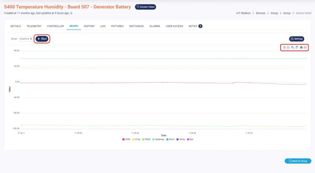 In Graph tab, you are able to monitor and download the data from your telemetries.