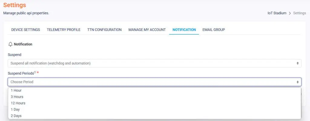 When you go to this tab, you may set your notification to not bother you. This feature can be useful when your site is doing full maintenance which requires all the devices need to be turned off or the internet needs to be shut down.