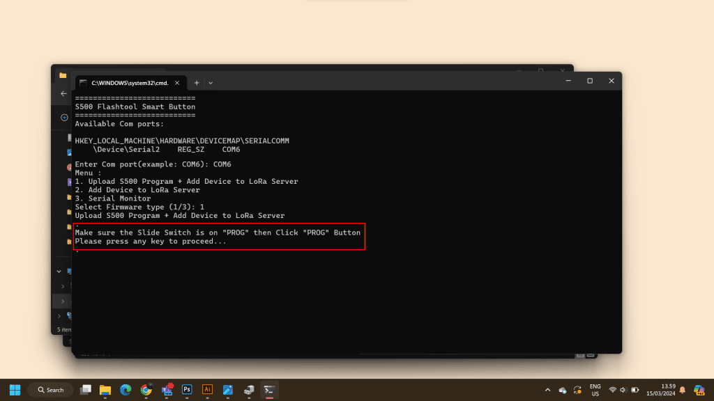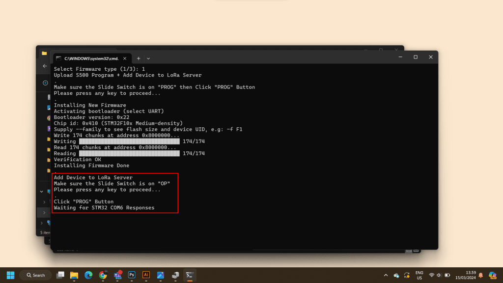 12. To add the device to LoRa server, make sure to slide the switch to OP again. Then press any key to continue the installation.
