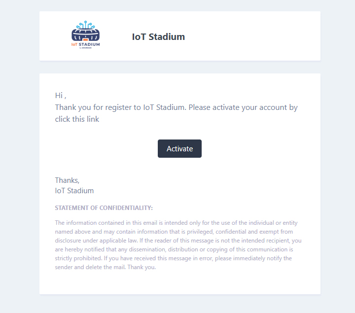 Your account has been activated, and you can go to the login page by clicking on the Login button on this card or the Login button on the IoT Stadium homepage.