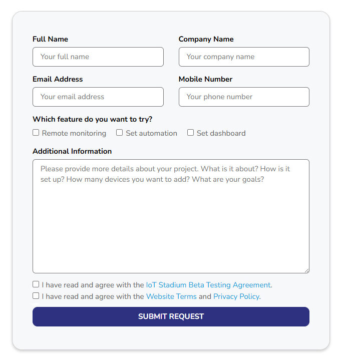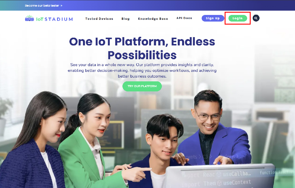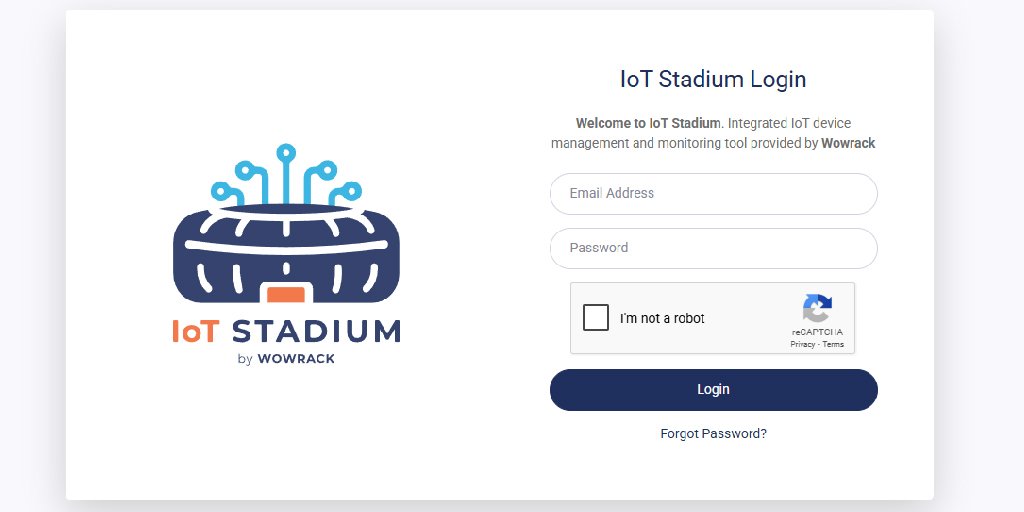 You can click on the Login button on the top bar then you will be directed to our IoT Stadium platform login page.