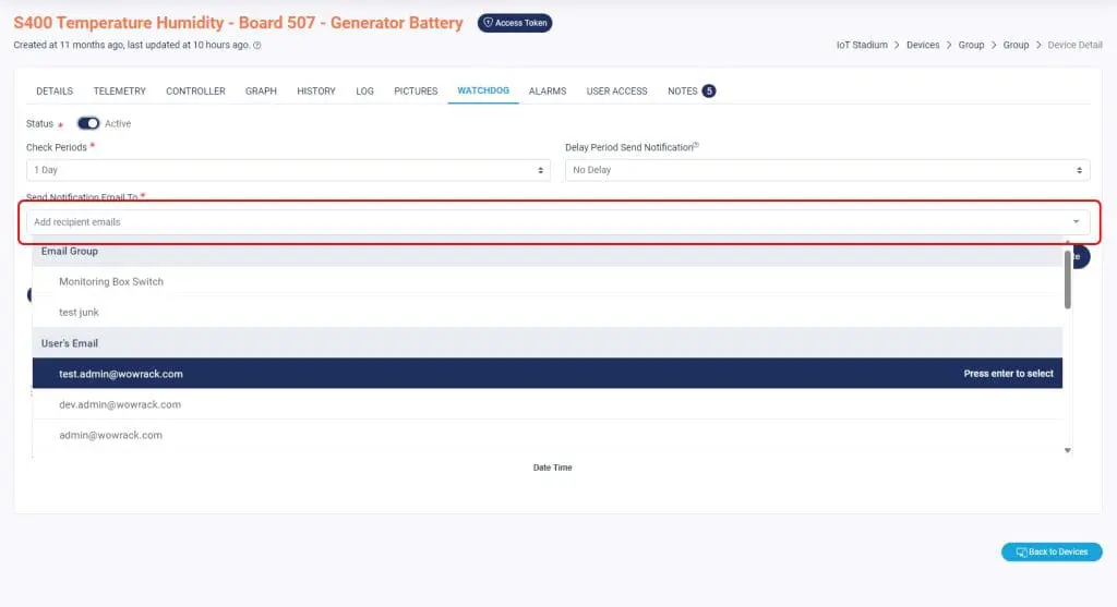 4. Set the email recipient, you may set multiple to receive the notification.
