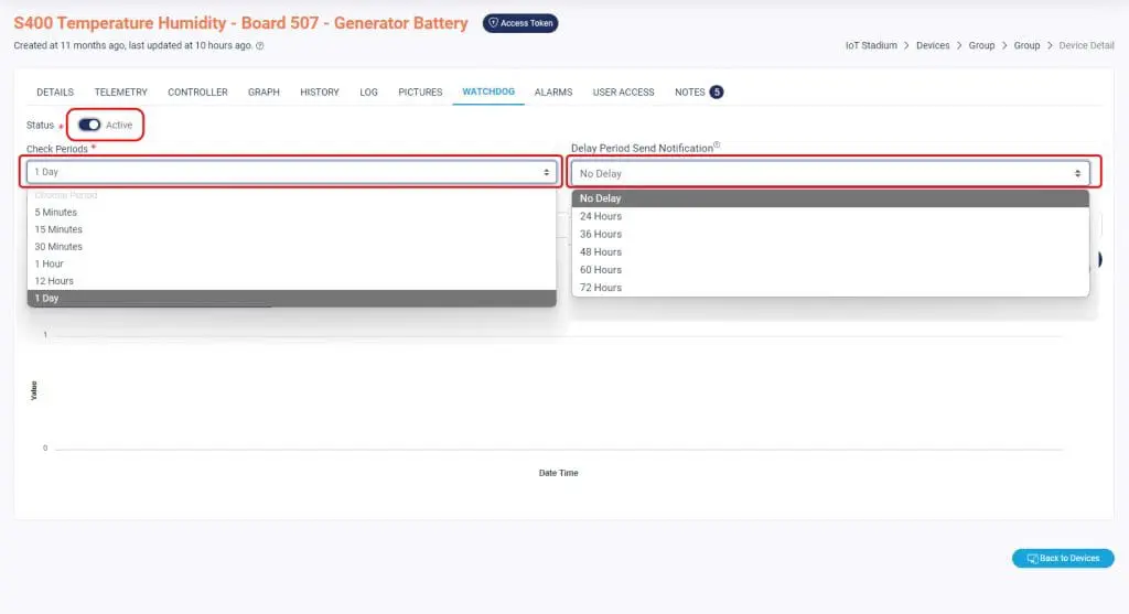 Tips: Set the delay as 'No Delay' will make you have notification as soon as when the device is off.