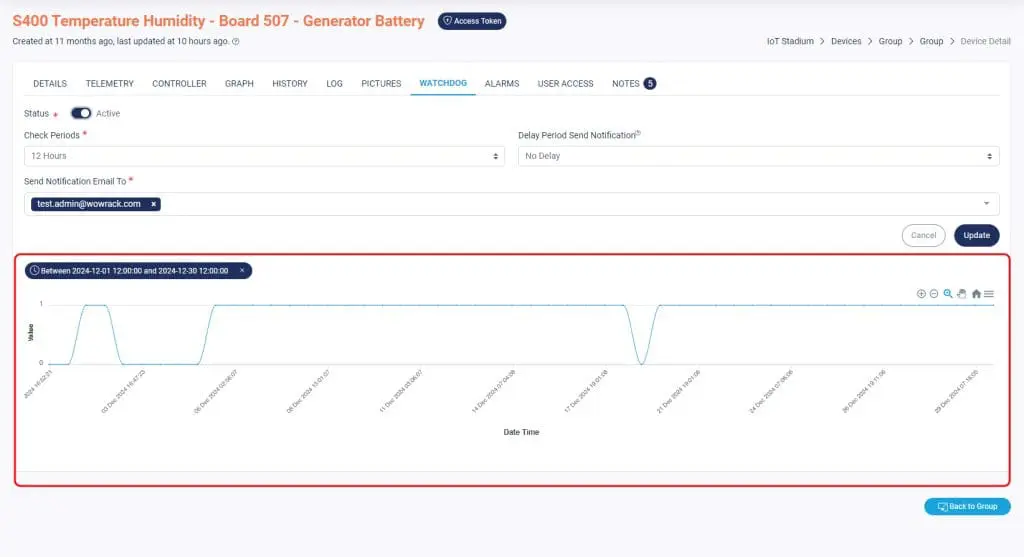 The watchdog feature monitors and reports whether your device is on or off.