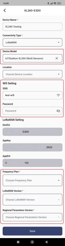 11. Set the Device Model as IoTStadium XL260 (Multi Sensors).