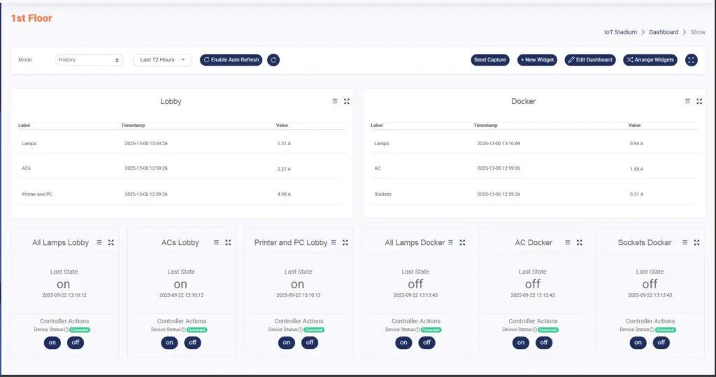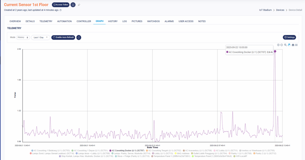 Selain itu, grafik real-time membantu Anda mendeteksi anomali sejak awal. Jika tiba-tiba terjadi lonjakan konsumsi listrik di luar jam kerja, sistem akan menampilkannya pada dashboard sehingga bisa segera diinvestigasi—apakah ada perangkat yang lupa dimatikan, atau ada kerusakan yang membuat perangkat membutuhkan daya yang lebih besar dari biasanya. Dimana, Anda bisa mematikan perangkat tersebut melalui dashboard.