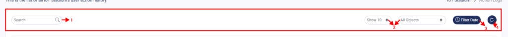 Set the preferred display set of actions list. You can show the list until 100 actions in one page, ang you can also filter the actions based on its types. - Filter Date