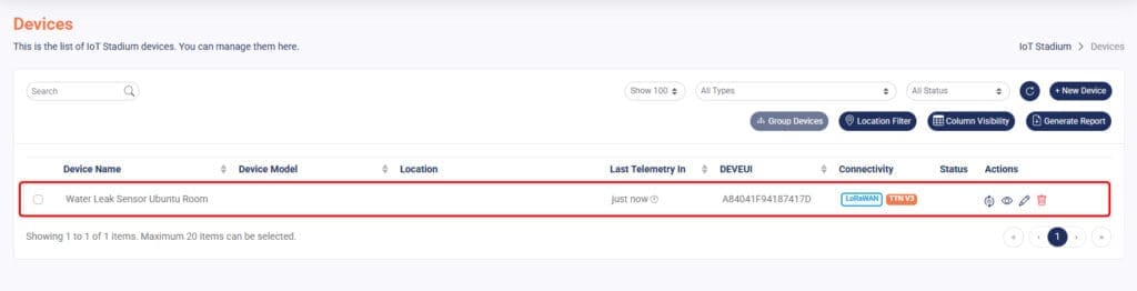 5. Once it is done, IoT Stadium can present the data from your device.