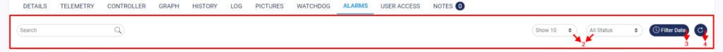 You can type words or phrases to find specific telemetry or telemetries. - Alarm List Display