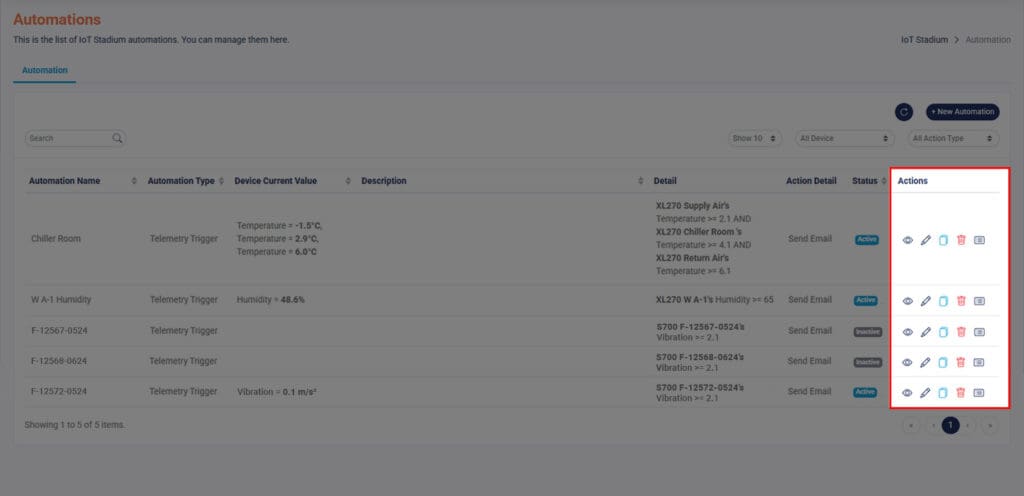 Set the preferred display set of automation list. You can show the list until 100 automations in one page. Filter the automation based on its related device. And lastly, set the list based on its action, ranged from set alarm, set controller action, send email and call REST API. - Refresh