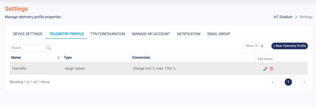To delete your telemetry profile, you just need to click the Delete icon, then confirm if you want to do the deletion.